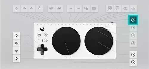 XAC(Xbox Adaptive Controller,微软无障碍控制器)的正面右侧有两个巨大的按键,在默认设置下分别对应Xbox手柄的上的A键和B键。其左侧为方向键、菜单键、选择键、Xbox键等等。