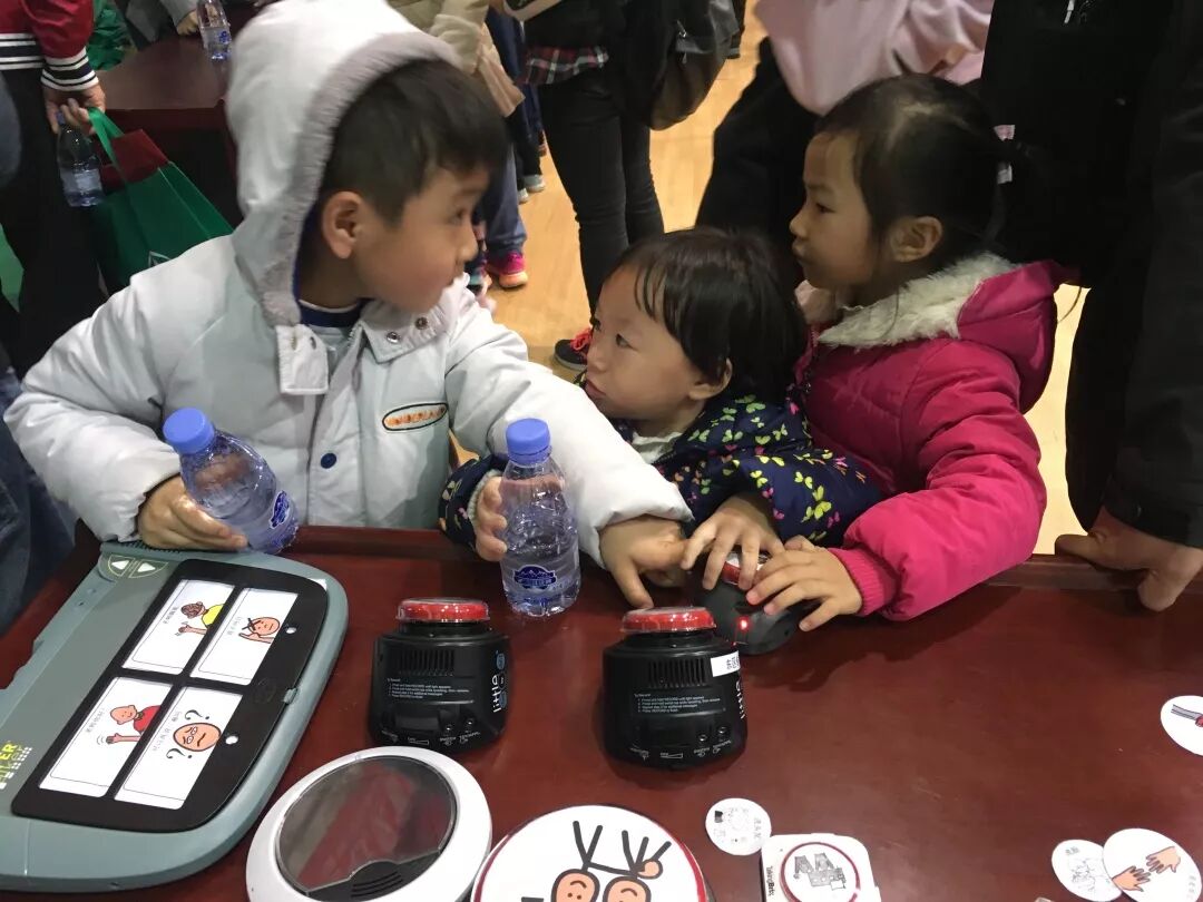 人机交互接口BCI、沟通辅具AAC及电脑辅具与玩具的结合方式,吸引了不少小朋友逗留玩耍,孩子们在开心玩耍的同时,也学到了各种知识。
