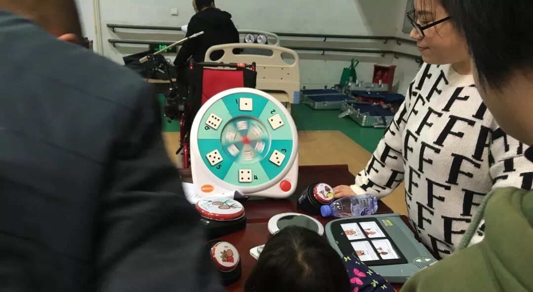 通过人机交互控制小猪佩奇行走与唱歌,抓握类开关可以训练孩子们的抓握能力。(别忘了单按键的沟通辅具也是可以控制电动玩具滴!)