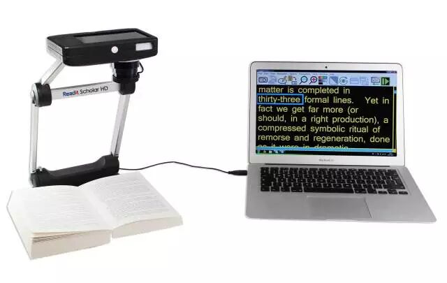 这款超高分辨率的3合1相机,身板儿小,重量轻,可与Readit软件配合使用。它可以即时访问打印文档,将其转换为大字体和文本到语音输出。你只需将轻巧的相机插入PC或笔记本电脑,即刻它就能将任何打印的文本转换为清晰的语音。