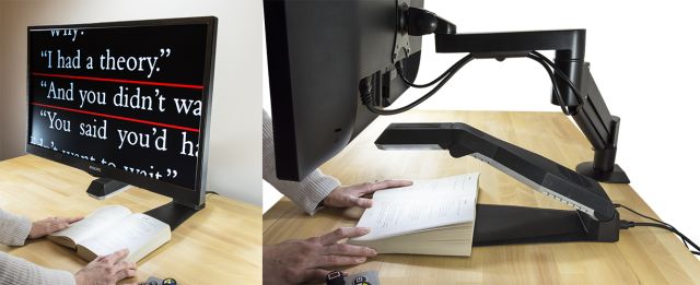 这是一款拥有60 fps的高清摄像头,允许高速读取、自动对焦、可折叠,它可以通过HDMI连接到任何电视或电脑显示器,触觉无线控制板可以即时访问所有主要功能。此外它还增强了阅读颜色,设有线条,百叶窗等多种独特的多线条和签名框,满足低视力者的个性需求。